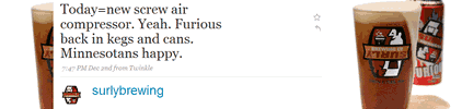 It should be noted that if a brewery is thinking about joining up but is looking at it from purely a marketing angle (and wanting to make a huge bang for its buck), that brewery shouldn’t waste its time. Twitter is more of an interpersonal service than a marketing scheme though you can definitely make it work BOTH ways. Small breweries are a perfect fit for Twitter: