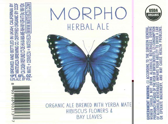 Morpho Herbal Ale will be available in 22-ounce bottles and draft in select locations throughout California, Oregon, Washington and Colorado. For more information, sales information and high-res imagery visit www.mateveza.com.