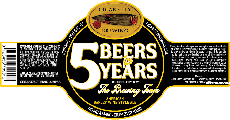Cigar City 5 Beers for 5 Years American Barley Wine