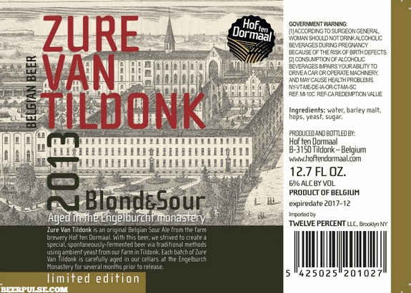 Hof ten Dormaal Zure Van Tildonk 2013 Blond and Sour Belgian Beer