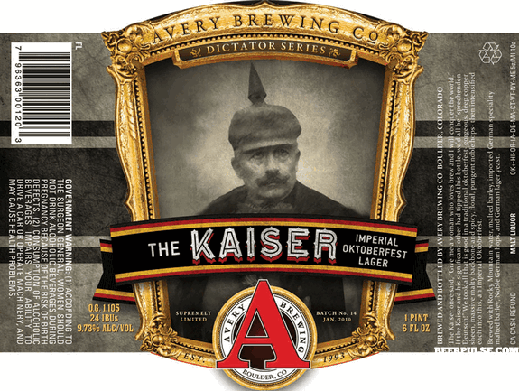 Avery The Kaiser Imperial Oktoberfest Lager returns next week Press Release: (Boulder, CO) - Kaiser Wilhelm once said, “Give me a woman who loves beer and I will conquer the world.” If the... August 2, 2013 at 12:39 AM